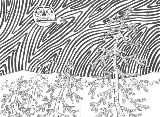 Llege zedle s_on nes_it'in (Tahltan for we see stars only at night ) is a surrealistic landscape of Tahltan shapes, culture and motifs. Originally created for the Nanaimo Art Gallery's group show "Gutters are Elastic" between July 15 to September 23, 2023, Pauls decided to expand the work into a full-length book.