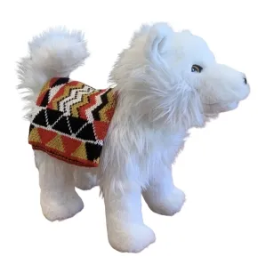 This woolly friend is wearing a blanket designed by internationally renowned Coast Salish weaver and Musqueam knowledge-keeper Debra Sparrow, whose highly sought-after weavings & designs are cultural undertakings centered on ancestral connection, stewardship, and the reawakening of Coast Salish traditions.