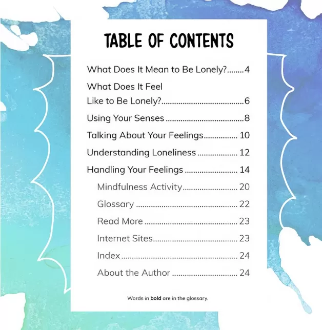 What does it mean to be lonely? Loneliness may not make us feel good, but it's an emotion everybody has! Children will learn how to identify when they are lonely and ways to manage their feelings. Large, vivid photos help illustrate what loneliness looks like. A mindfulness activity will give kids an opportunity to explore their feelings.