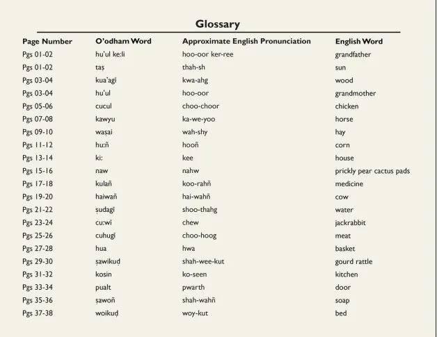 This book includes many O'odham words, but it is not a dual-language book. A glossary is included.
