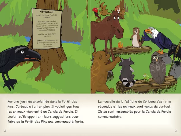Niveau 19 Présentation du livre de couverture: Corbeau aime faire des plans pour ses amis animaux. Il a décidé que sa communauté a besoin d’être plus forte. Il invite alors tous ses amis animaux à un Cercle de Parole. Chaque animal devra apporter une suggestion pour aider la communauté à devenir plus forte. À votre avis, quelles idées les animaux vont-ils apporter au Cercle de Parole ?